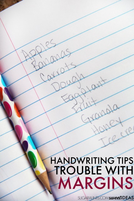 Ya lo has visto antes. Un niño está escribiendo una entrada en su diario o una respuesta escrita en un papel y cada línea del párrafo se arrastra hacia el centro de la página. Los márgenes de su escritura están por todas partes. Al final del pasaje, el margen izquierdo llega a la mitad de la página. Es posible que los veas empezar por la mitad de la página y tratar de aplastar las letras para cuando lleguen al lado derecho de la página. Es difícil de leer e incluso el niño tiene problemas para leer su trabajo. La cuestión es que el estudiante puede no ser consciente de que está escribiendo así… Cuando un niño utiliza mal los márgenes al escribir, suele haber un problema de organización espacial y de orientación de la página. La disminución de la conciencia espacial puede deberse a problemas de percepción visual. Puede que la escritura sea muy desordenada, con palabras aplastadas unas contra otras o con espacios muy grandes entre las letras. Hoy tengo algunos consejos para ayudar a la conciencia espacial en la escritura, incluyendo cómo ayudar con los márgenes al escribir. Estos consejos pueden ayudar a los niños a escribir en el papel y a utilizar una letra legible para que puedan volver a leer lo que han escrito. (¡Y para que el profesor o los padres puedan leer esa letra también!) Las habilidades perceptivas visuales son necesarias para muchas habilidades funcionales. Encontrarás formas fáciles y divertidas de trabajar en habilidades de percepción visual a través del juego aquí. Se trata de formas creativas de trabajar los problemas subyacentes que podrían estar jugando con el uso de los márgenes en la escritura a mano como resultado de las dificultades de conciencia espacial. Este post contiene enlaces de afiliación.